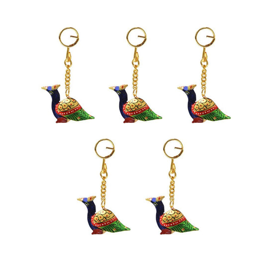 Beautifully Designed Wooden Elephant & Peacock Key Chain set