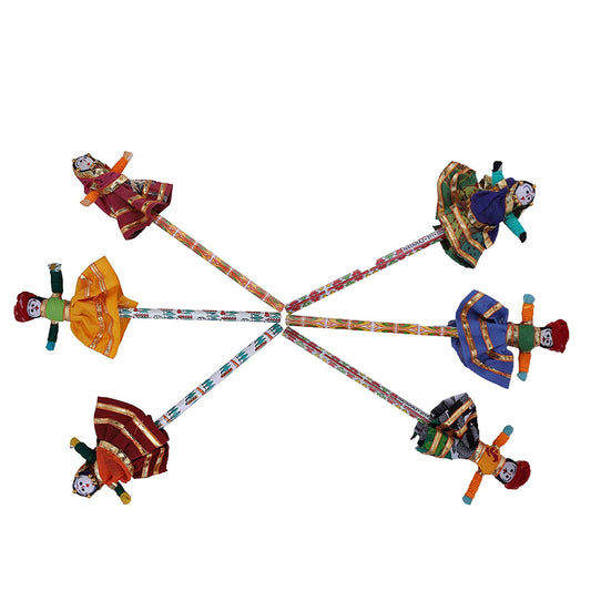 Indian Handmade Wooden Rajasthani Puppet Pencil Set of 3 Pair