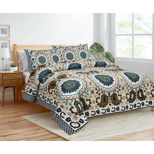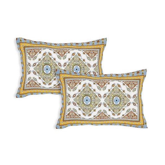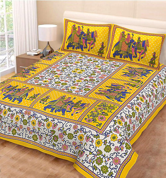 Jaipuri Printed 100% Cotton Traditional Bedsheet for Double Bed King Size with 2 Pillow Covers for Home