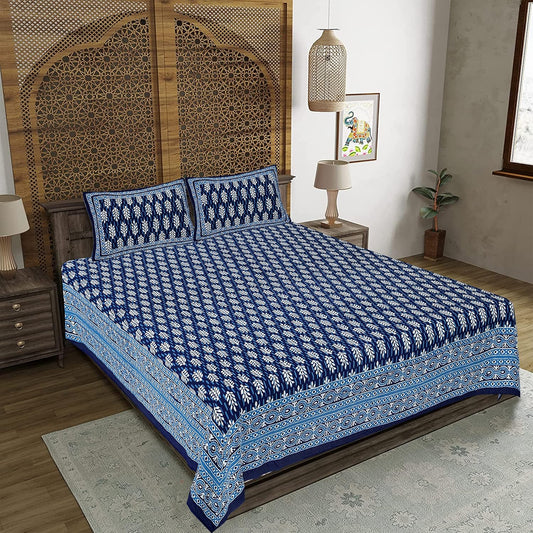 Jaipuri Microfiber Cotton Bedsheet King Size | 240 TC King Size Soft Bed Cover with 2 Pillow Cover | Hypoallergenic Bedsheet for Double Bed | Anti Fade and Printed (108x108 Inches, Dark Blue)