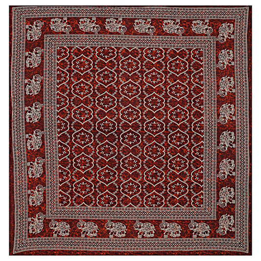 Rajasthani Jaipuri Traditional Sanganeri Print 451 TC Cotton Double Size Bedsheet with 2 Pillow Covers (90X108 INCH) (Maroon)