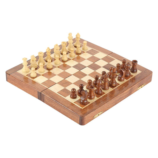 Wooden Chess Set With Magnetic Board And Hand Carved Chess Pieces