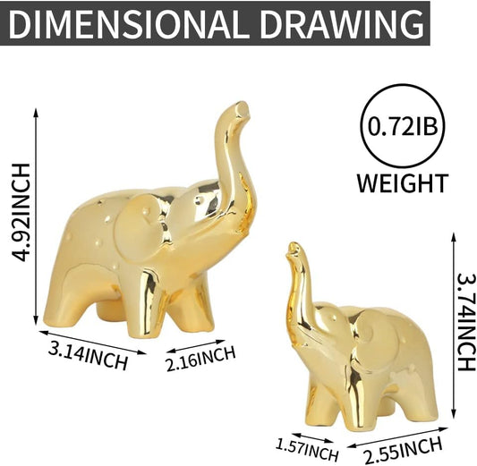 Resin Auspicious Elephant Statue For Home Decor, Home Decor Items For Living Room, Showpiece For Home Decor (Set Of 2, Gold)