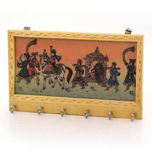 Wooden Hand Crafted Gemstone Painting Key Holder