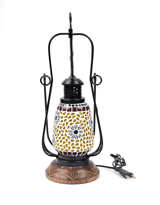 Wooden Electric Lamp/Lantern/Night Lamp for Diwali/Christmas/Decoration Purpose/Festive Ocassions Home/Office/Café (Wood & Glass, Set of 1) (6x18 Inch)