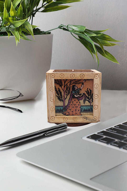 Wooden Handcrafted Pen Stand For Decor