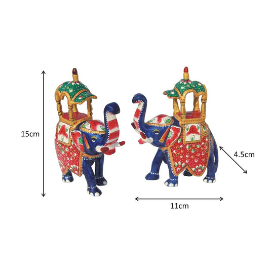 Hand Painted Metal Enamelled Pair of Ambavari (Rajasthani) Elephant