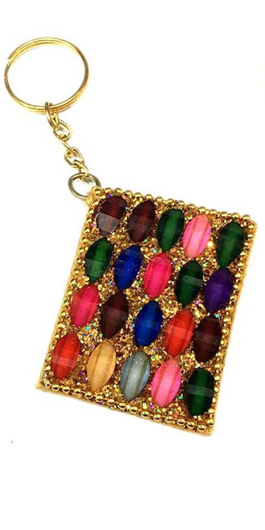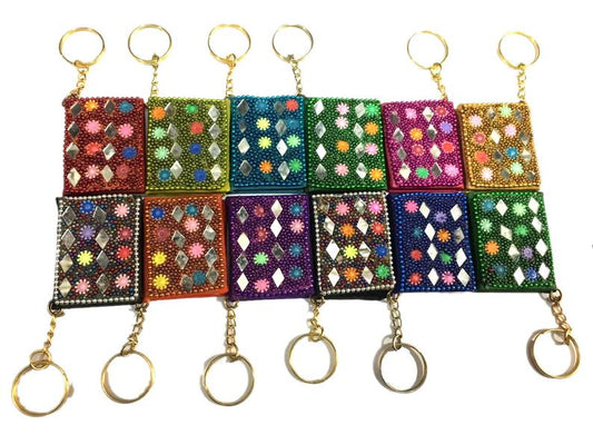 Decorative Handmade Multi Color Lacquer Work Diary Key Chain In Set Of 12