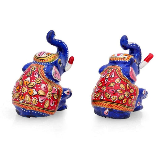 Hand Painted Metal Enamelled Pair of Sitted Elephant