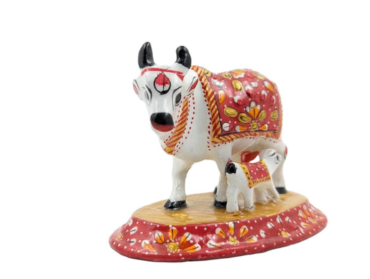 Handmade Metal Kamdhenu Cow Figurine With Baby For Home Decor And Good Luck