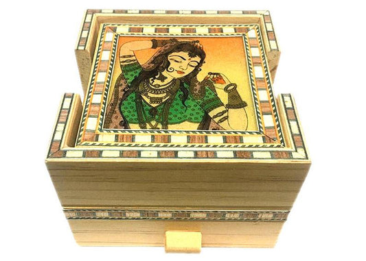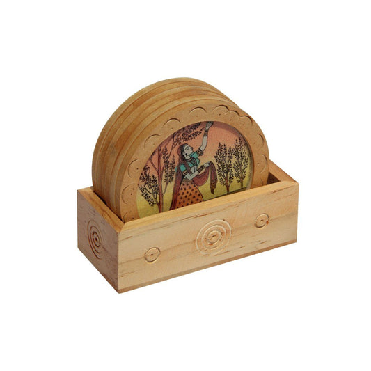 indian Handmade Wooden Hand-Painted 6Pc Tea Coaster Set