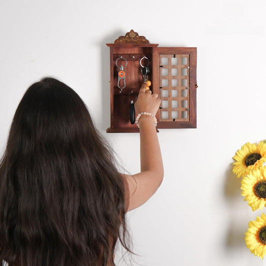 Handmade Premium Sheesham (Rosewood) Wood Key Holder-Square Design Key Chain Holder for Medium Size Keys - (12.5 x 6.5) Inch Wooden Brown Color