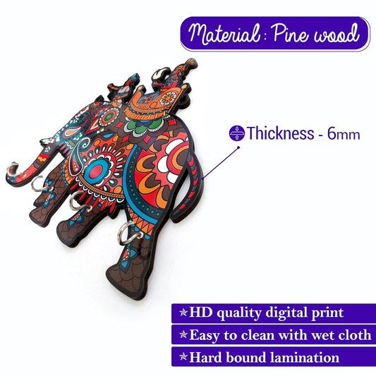 Jaipuri Handmade Elephant Design Wall Mount Wooden Key Holder For Home Decor And Gift