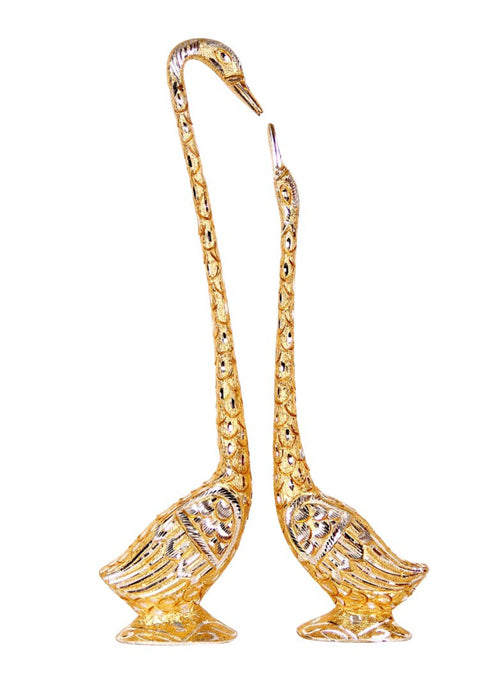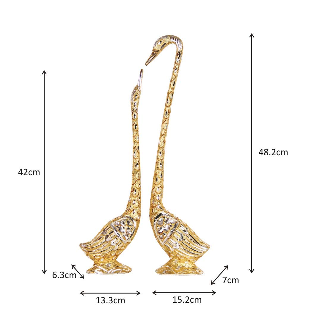 This most beautiful pair of swans by "[Jaipuri Handicraft]" is a wonderful creation in metal art. This pair bears the message of love and relationships as both of them come together as pair. Swans are symbolic of love, grace, union, purity, beauty, dreams, balance, elegance, partnership and transformation. This creation is made of metal making it everlasting; like the love and bonding between the swans. It keeps swimming with the creative flow. The male swan has a slender long neck than the female, thus creating height difference. The swan teaches us to maintain long and loyal relationship for she knows how to stay true to others. Keep it in your bedroom and trust that long lasting love will be part of your life. It can also be kept in water etc. to give an extraordinary effect. It is a perfect gift for people who love. As handmade it might have mild variations.