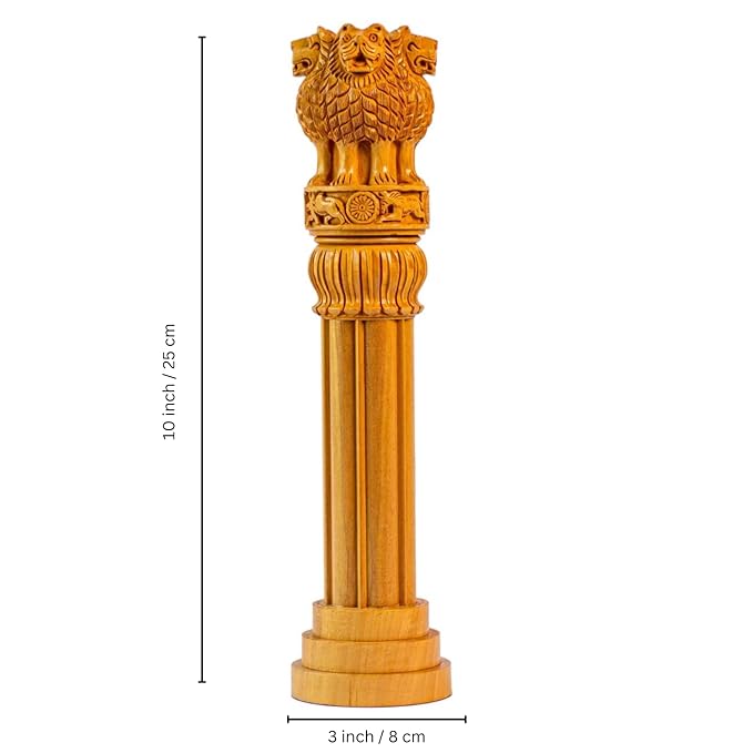 Wooden ashoka pillar home decor gift item national emblem india. It stands for the, values of power, courage, pride, confidence and truth. Place it on your work desk, or in your wall unit as a symbol of what you value most in life !item