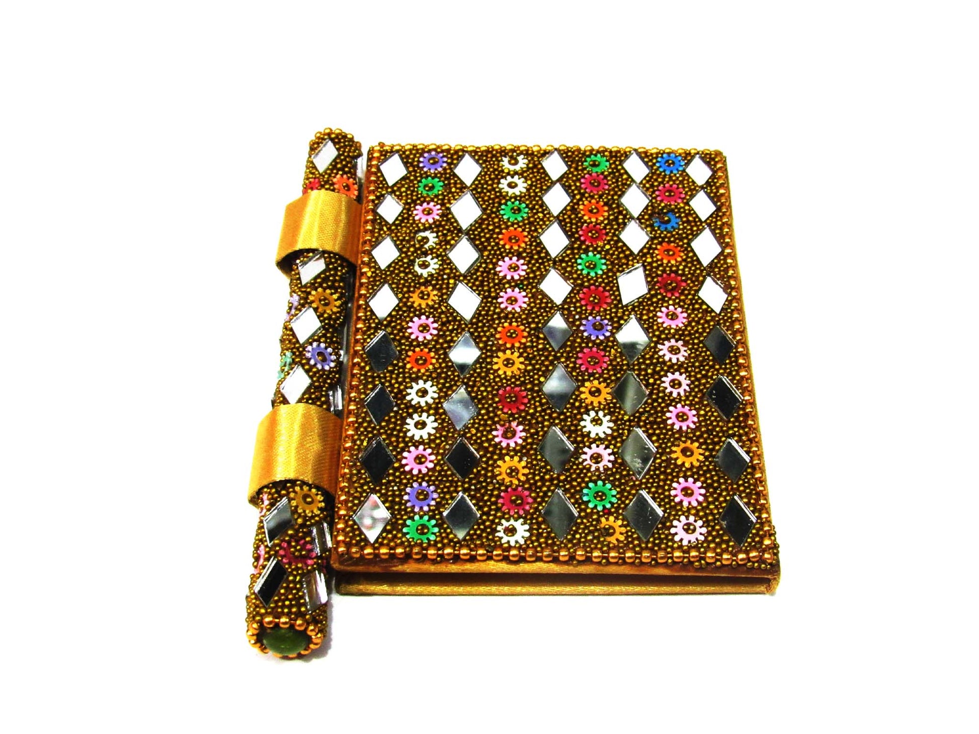 Handmade Lacquer, Mirror And Beats Work Diary With Pen For Personal Use And Gift
