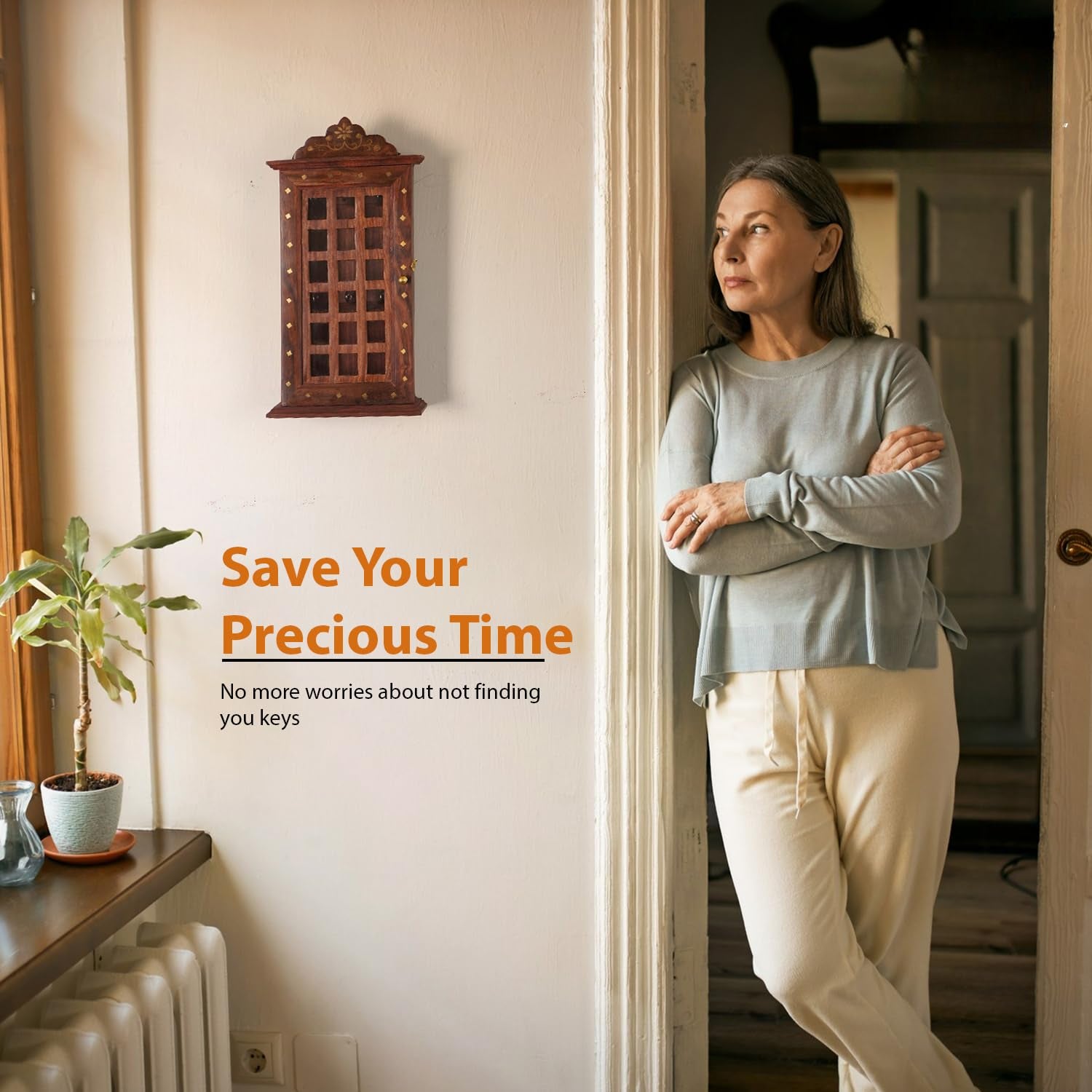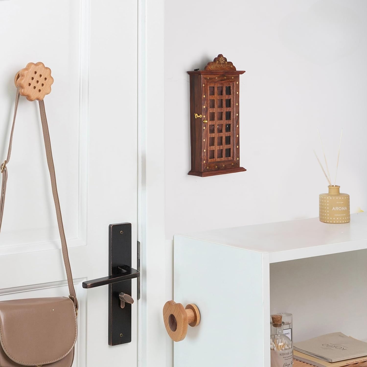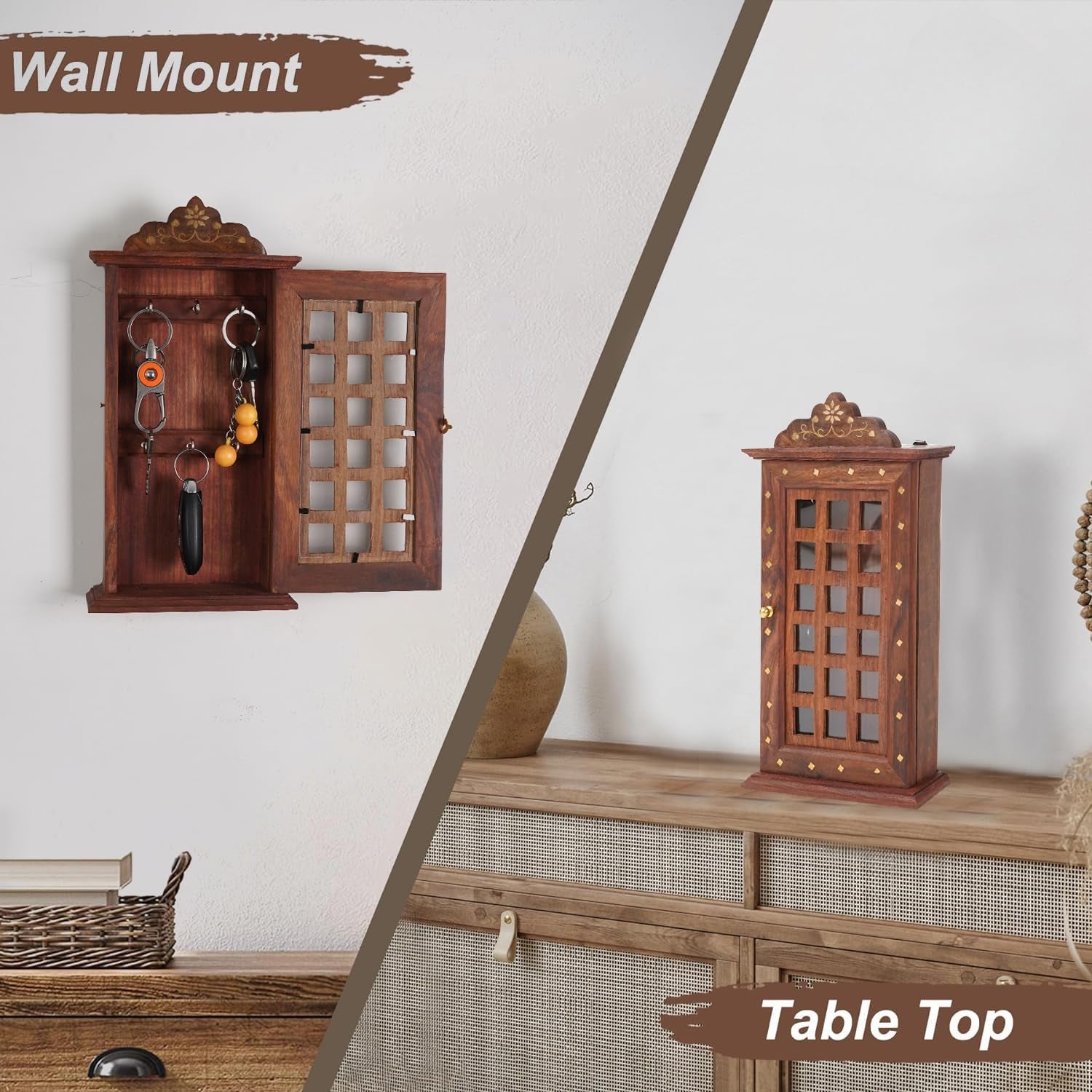 - 【BEST MATERIAL】- The wall-mounted design can aid you to make full use of wall space. Utilize your unused wall by hanging this decorative wall organizer and keep your keys! Wooden knob on door for easy opening.