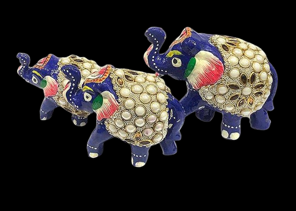 A decorative elephant set with pearl work to make it look beautiful and suitable for home décor.