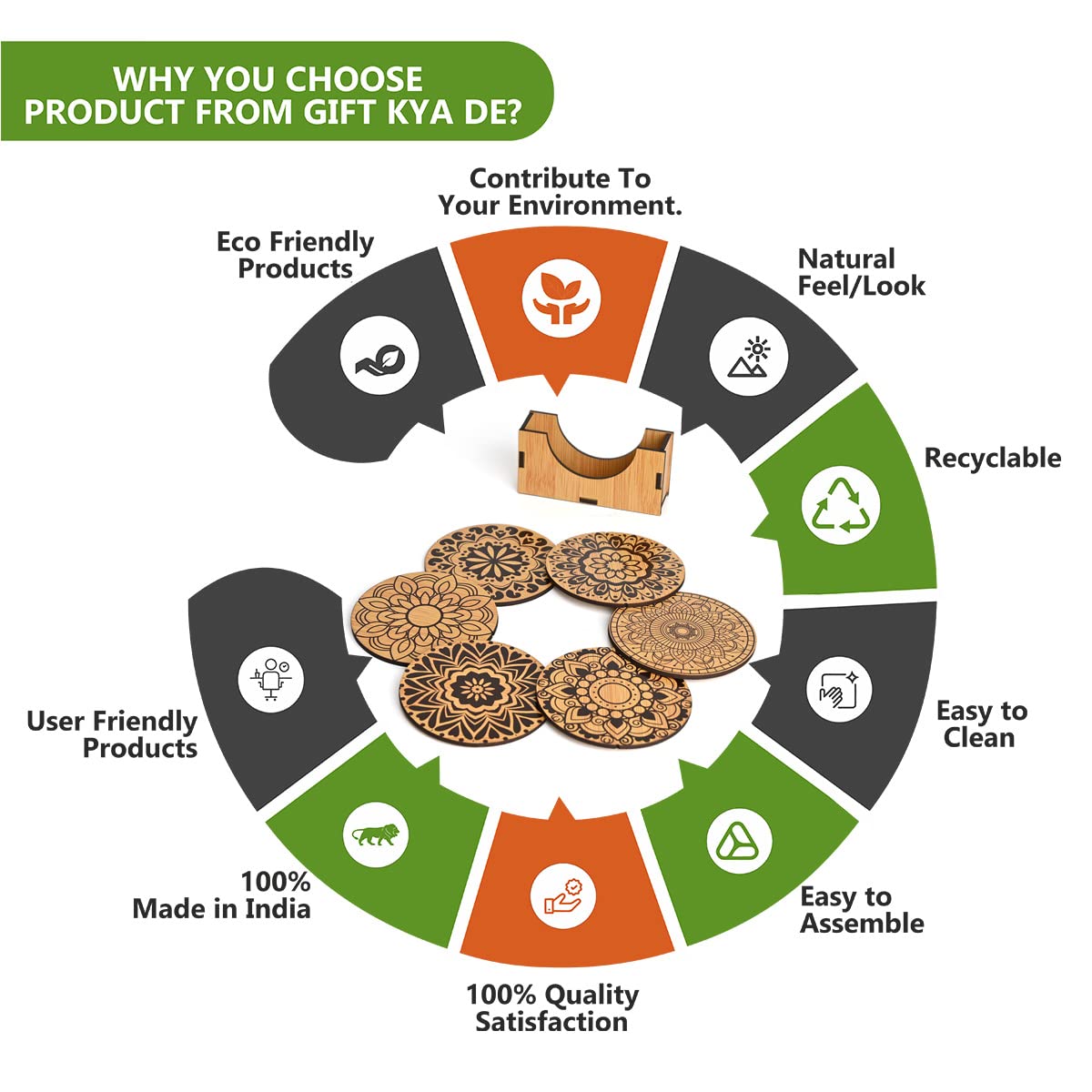 - Kitchen Decor Element: Decorate Your Kitchen With A Set Of 6 Beautiful Wooden Coasters. Add To Your Kitchen Decor With This Handcrafted Piece. Comes In An Attractive Printed Color That Elevates The Look Of Your Kitchen And Dining Space.