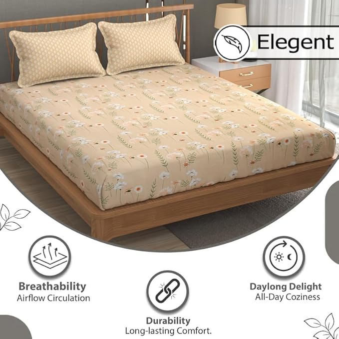 - Durable 240 Thread Count Construction: With a thread count of 240, this bedsheet combines durability with indulgent softness. The higher thread count results in a tighter weave, creating a fabric that is both resilient and long-lasting. Enjoy the peace of mind that comes with knowing your bedsheet can withstand the test of time, maintaining its integrity wash after wash.
