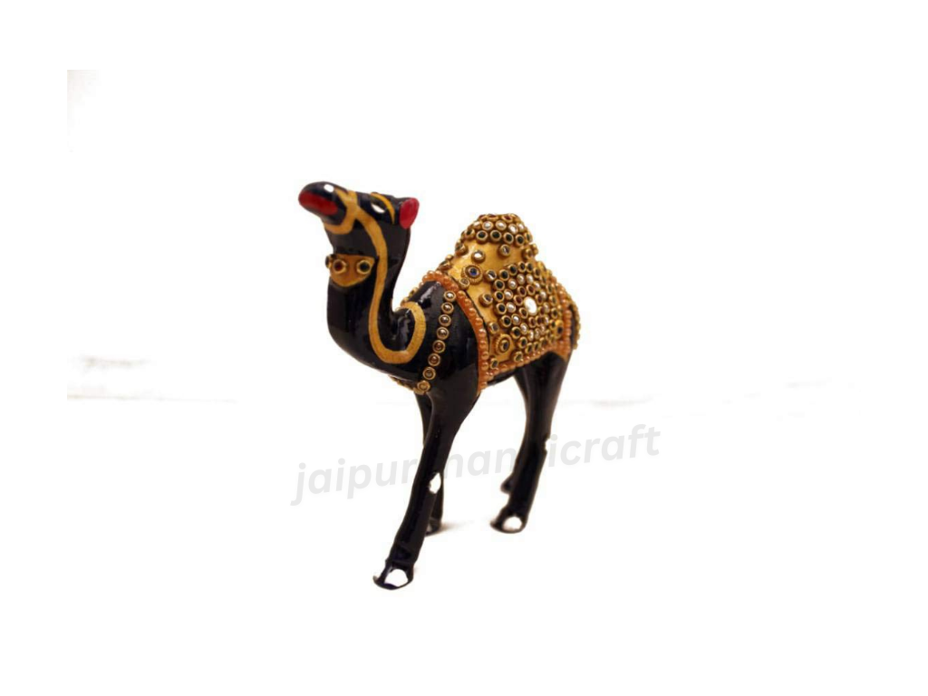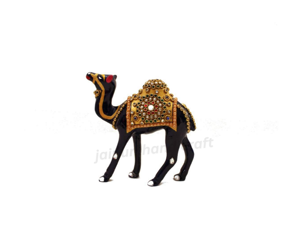 Elevate your decor with this stunning set of 2 metal handmade camel figurines adorned with exquisite stone work. Crafted with meticulous attention to detail, these decorative showpieces exude elegance and charm. Each camel is meticulously designed, with the intricate stone work adding a touch of opulence and sophistication. Whether displayed on a mantel, shelf, or tabletop, these figurines are sure to become focal points of admiration in any room. The combination of metal craftsmanship and stone embellishments creates a captivating aesthetic that will enhance the ambiance of your space. Add a touch of desert-inspired luxury to your home or office with this exquisite camel figurine set.